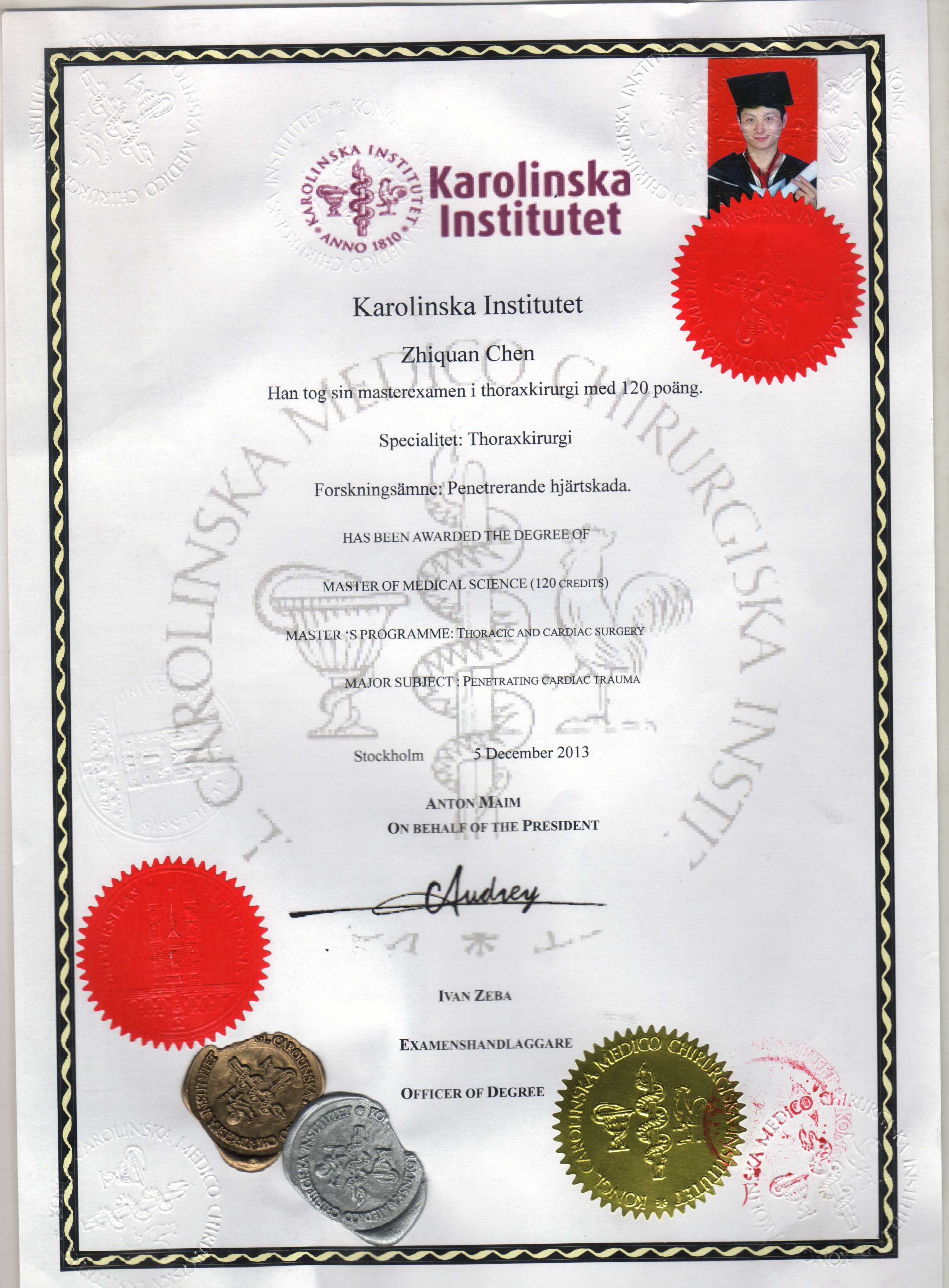 Образование: Каролинского института в Швеции Мастер груди за пределами мозга.