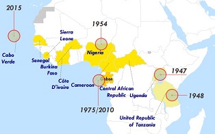 This timeline summarizes the spread of Zika infection, country by country, from the earliest discovery in 1947 to the latest information as of 7 February 2016. Zika virus infection appears to have changed in character while expanding its geographical range.